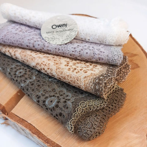 Use forDecoration, necklaces or sewn to the edges of dresses, shirts, skirts, underwear and used to create your own Dessous. You can also do inserts and cut outs or wrap a gift with these laces. Fitting for Bralettes, Slips or Lingerie Sets. There is no end to imagination on what to do with a Galloon lace. |