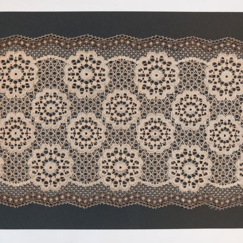 Depending on the quantity, lace fabrics will either be put onto a roll/spool and packed into cartons or, if the quantity is low, they may also be just folded and put into an envelope. The meterage per roll/spool varies depending on the width.