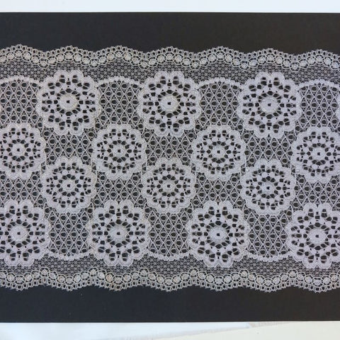 Lace TypeGalloon Laces are distinguished by having scallops or having other shape designs on both edges. They are mostly symmetrical and available in many widths, making them one of the most versatile lace types. These laces are usually elastic and stretchy. So you want to use some lace for something? Get yourself some Galloon laces! |