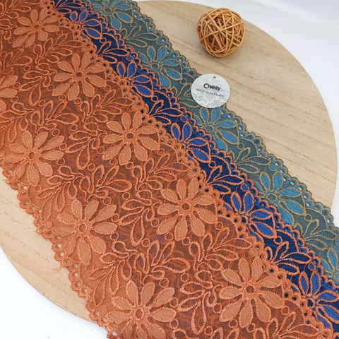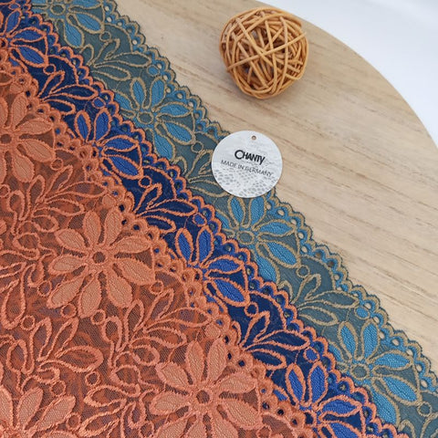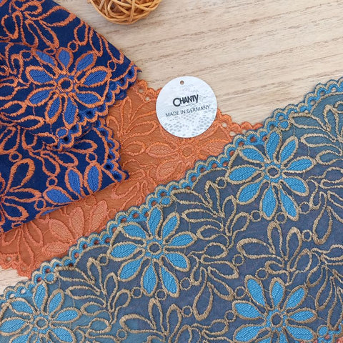 Depending on the quantity, lace fabrics will either be put onto a roll/spool and packed into cartons or, if the quantity is low, they may also be just folded and put into an envelope. The meterage per roll/spool varies depending on the width.