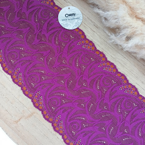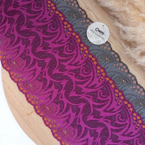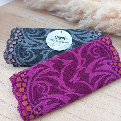 Lace TypeGalloon Laces are distinguished by having scallops or having other shape designs on both edges. They are mostly symmetrical and available in many widths, making them one of the most versatile lace types. These laces are usually elastic and stretchy. So you want to use some lace for something? Get yourself some Galloon laces! |