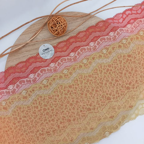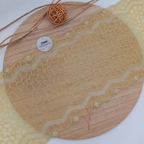 Lace TypeGalloon Laces are distinguished by having scallops or having other shape designs on both edges. They are mostly symmetrical and available in many widths, making them one of the most versatile lace types. These laces are usually elastic and stretchy. So you want to use some lace for something? Get yourself some Galloon laces! |
